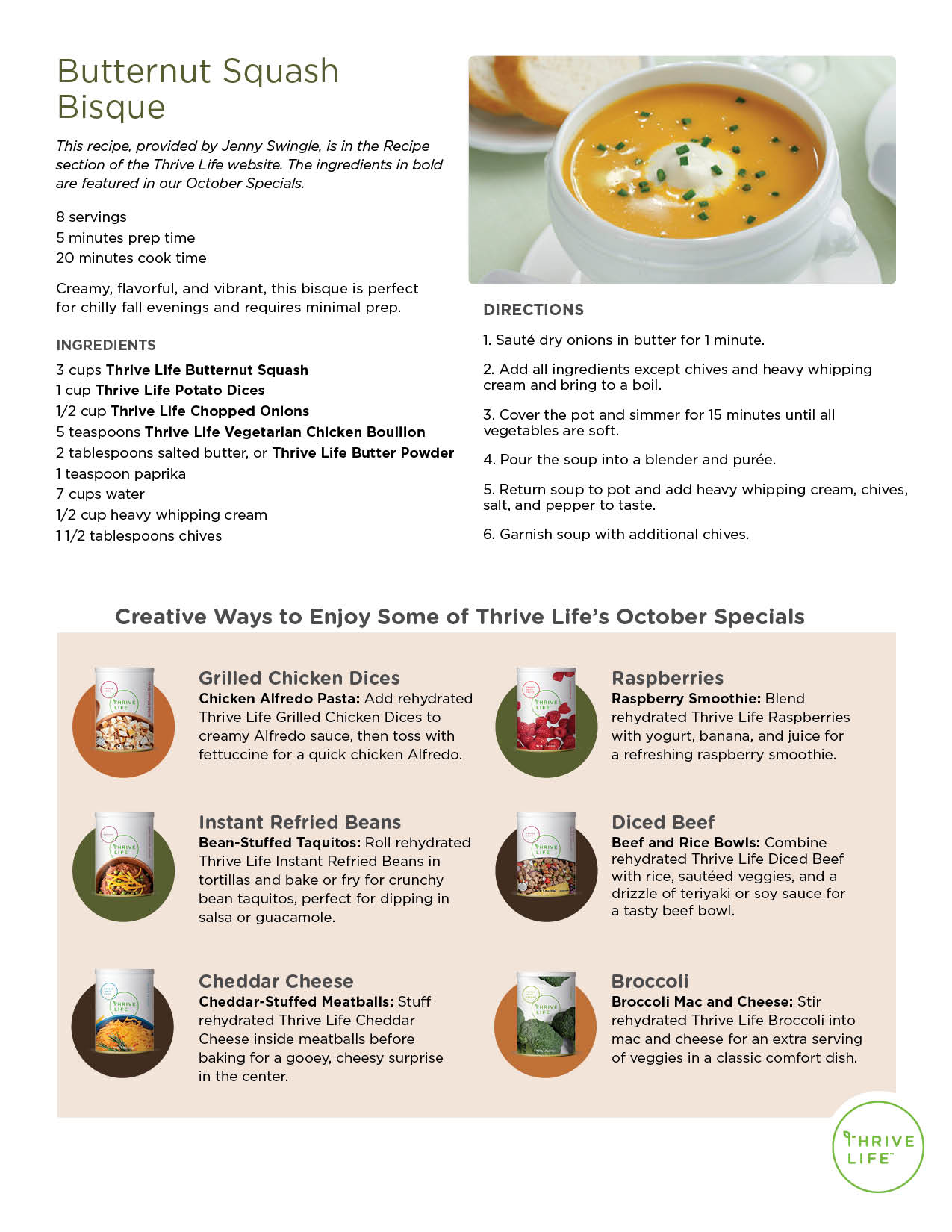 Butternut Squash Bisque using Thrive Freeze Dried Food